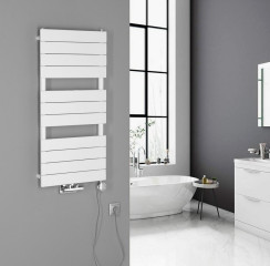 Stylový radiátor z hladkých zaoblených ocelových profilů s praktickým středovým připojení s roztečí 50 mm a zároveň otvory se záslepkou ve svislých kolektorech umožňují kombinované zapojení elektrické topné tyče nebo stranové připojení.