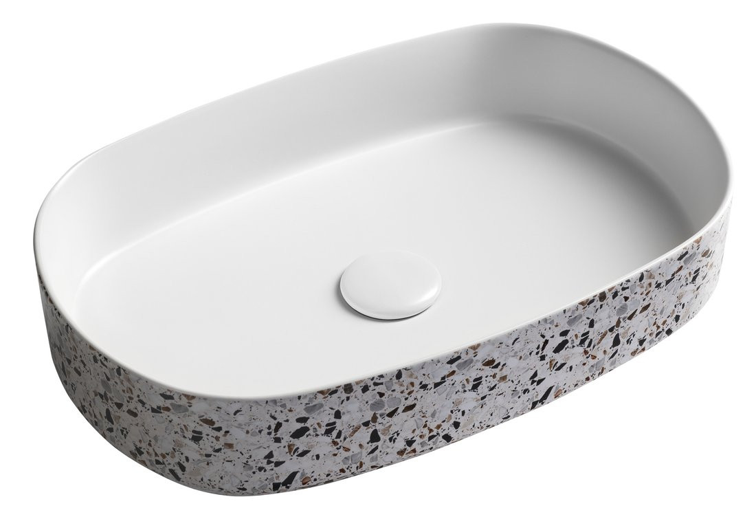 Isvea INFINITY OVAL keramické umyvadlo na desku, 55x36cm, terrazzo