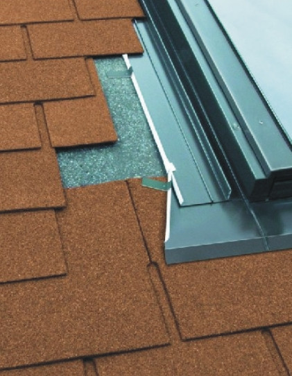 Toto lemování umožňuje spojení výlezu s plochou střešní krytinou výšky do 10 mm jako: lepenka, plechové šablony, asfaltový šindel, eternit ....