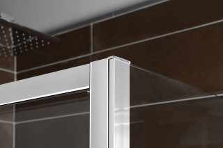 Případné nerovnosti stěny elegantně skryje profil, do kterého se zasouvá sklo dle potřeby až 20 mm |