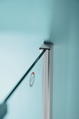 Stěnové nerovnosti elegantně skryje hliníkový profil, do kterého se zasouvá sklo dle potřeby až 20 mm. Stabilitu skel zajišťuje elegantní vzpěra s nastavitelným úhlem uchycení na obou stranách. |