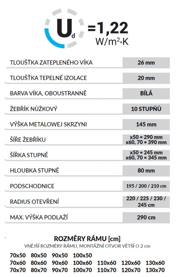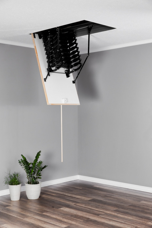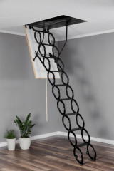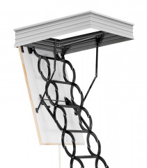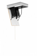 Půdní schody OMAN typu FLEX TERMO jsou stahovací schody s kovovým žebříkem a kovovým rámem, se zatepleným poklopem z přírodní dřevotřísky polepené oboustranně deskou HDF v bílé barvě. Slouží ke vstupu do půdních, případně podkrovních prostor. Poklop je zajištěn speciálním zámkem na klik. Příslušenstvím je dřevěná tyč sloužící pro snadnou manipulaci s poklopem a ovládání zámku.