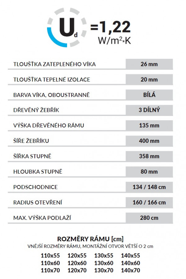 - světlá výška místnosti 280 cm (při menší výšce si schody majitel krátí na míru)