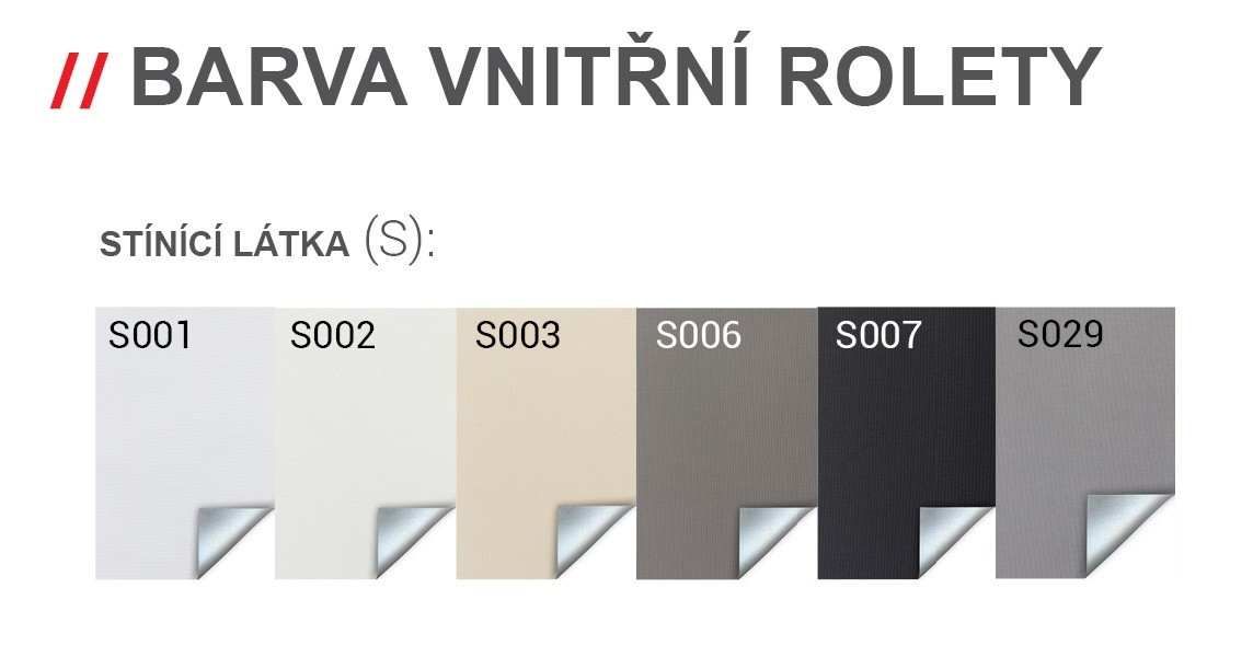 !! Při objednávce jednotlivých stínících doplňků, je nutné udat typ okna, dle výrobního štítku na okně (štítek je nejčastěji na křídle okna, když se křídlo otevře) !!