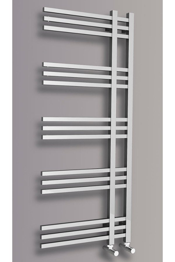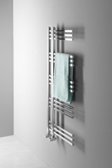 Designově tvarované koupelnové otopné těleso s výjimečným vzhledem je vyrobeno z pochromovaných ocelových trubek. Radiátor lze zavěsit oboustranně.