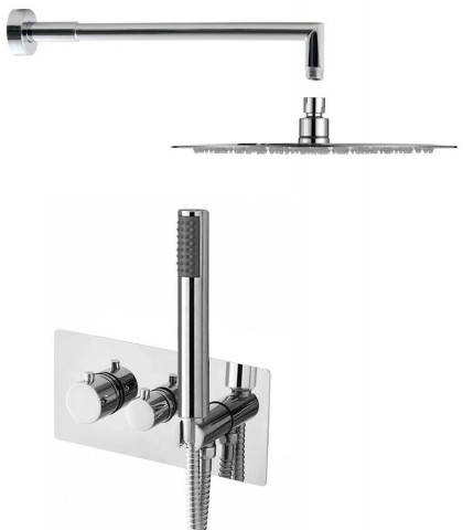 Sapho Podomítkový sprchový set s termostatickou baterií a držákem ruční sprchy, 2 výstupy, hranatá, chrom