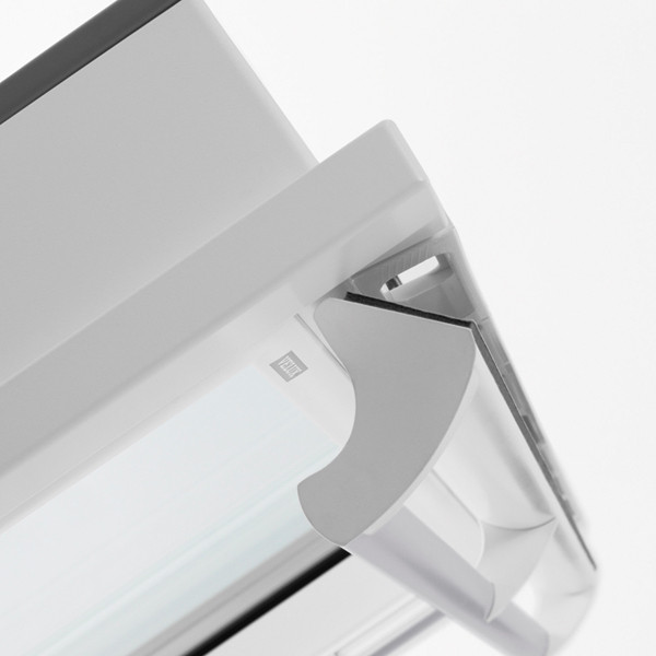 Ergonomické madlo v horní části křídla slouží nejen k otevírání okna, ale také k ovládání ventilační klapky se vzduchovým filtrem. Lze doplnit také motorickou jednotkou pro elektrické ovládání.