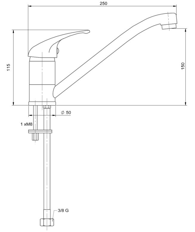 Vodotovní baterie METALA 55, stojánková dřezová. Délka otočného ramínka 210 mm.