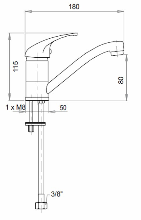 Vodovodní baterie METALIA 55, stojánková dřezová pro připojení na beztlaký ohřívač vody. Délka ramínka 150 mm. kartuše 40 mm.