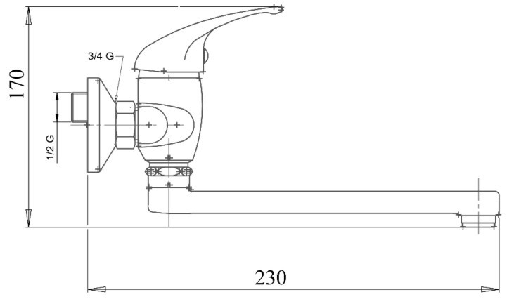 Vodovodní baterie METALIA 55, dřezová nebo umyvadlová nástěnná, délka výtokového ramínka 200 mm.