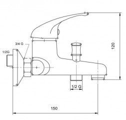 Vodovodní baterie METALIA 55, vanová nástěnná se samočistící sprchovou růžicí, vícezámkovou kovovou hadicí a kloubovým držákem sprchy. Rozteč 150 mm.